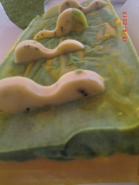 Por fin pude usar piezas decorativas hechas de anteriores jabones, ya tenía ganas de encontrar el soporte de jabón adecuado. .D