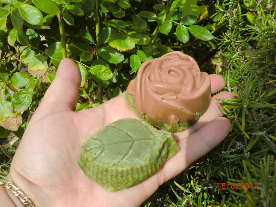 Además, como el jabón verde de romero lleva romero seco molido, también tendrá una acción exfoliante. Así que el día que te notes el cutis "sucio" o poco fino, ese día te friegas primero con la parte verde, lo dejas unos minutos, lo aclaras y te vuelves a enjabonar con la parte marrón, y dejas otro ratito más para que actúe la arcilla y la piel se restablezca de esos minúsculos arañazos del romero con el aceite de la r.mosqueta.