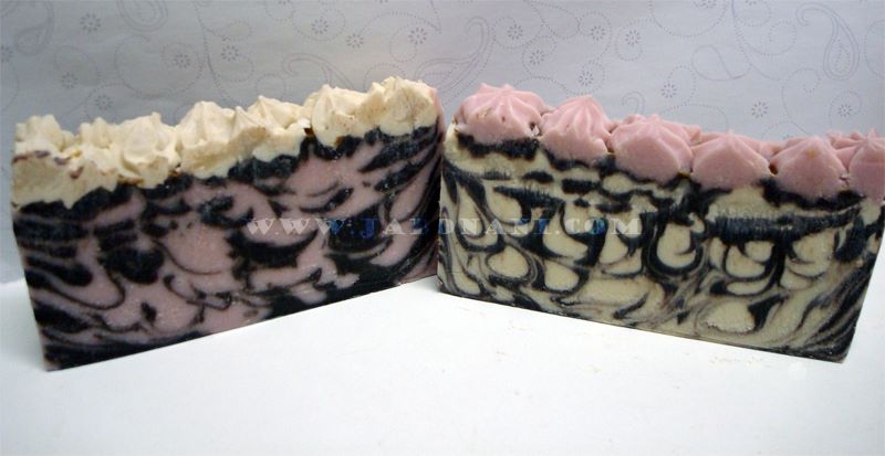 Y lo que más me gusta de este jabón a parte claro está de sus propiedades es ……… su estética, disfruté muuuucho haciéndolo dando rienda suelta a la imaginación y como me gustó tanto el resultado lo volví a hacer unos días después cambiando los colores, para tenerlo en otra variedad pero con el mismo procedimiento, y es un jabón que me encanta ya que pongas donde lo pongas, destaca y por si fuera poco embriaga con su dulce olor a chocolate, que para los choco-adictos como yo es una tentación ummmm………….os pongo la foto para que veais las dos versiones del mismo jabón.