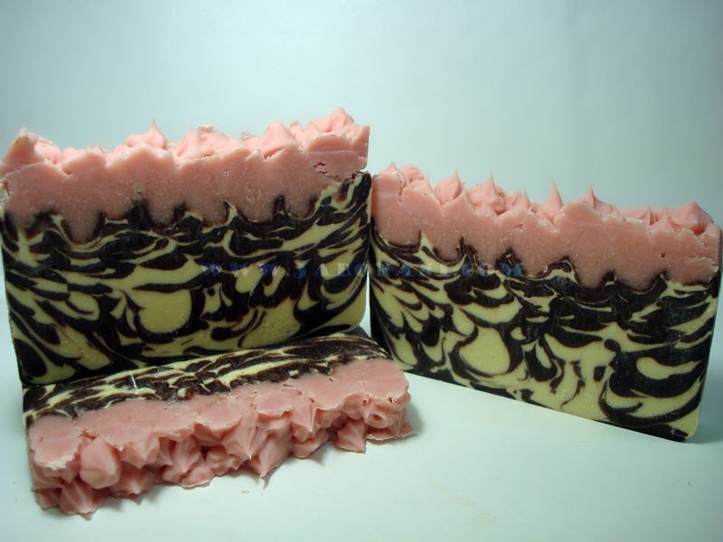 La composición completa de este jabón es de aceite de oliva, aceite coco, manteca de cacao, manteca de karité, aceite de almendras, cacao puro en polvo, aromatizado con fragancias de fresa, vainilla y chocolate.
