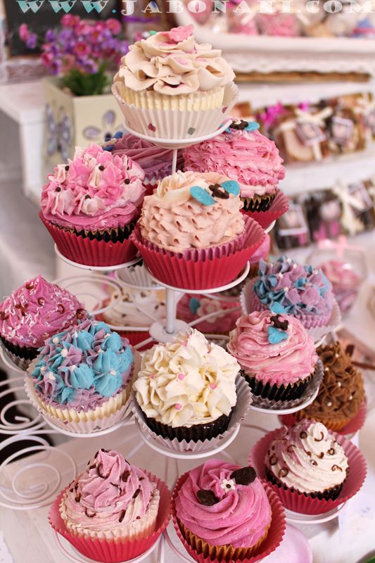 Aún así debo de dar las gracias a todos los que os pasasteis por allí , a los que nos visitasteis, a todos y cada uno de los que compraron nuestros jabones y cupcakes, a los que nos felicitabais por la decoración del stand y por la producción y a los que se creían que los cupcakes eran dulces de verdad y tenían que mirar dos veces para asegurarse y se quedaban con la boca abierta, ya que eso significa que he conseguido lo que pretendía y es darles el mayor realismo posible, lo único pedir perdón porque creo que entre los cupcakes de los puestos de pastelería que habían allí y los de jabones llevábamos a la gente un poco liada jejejeje…….