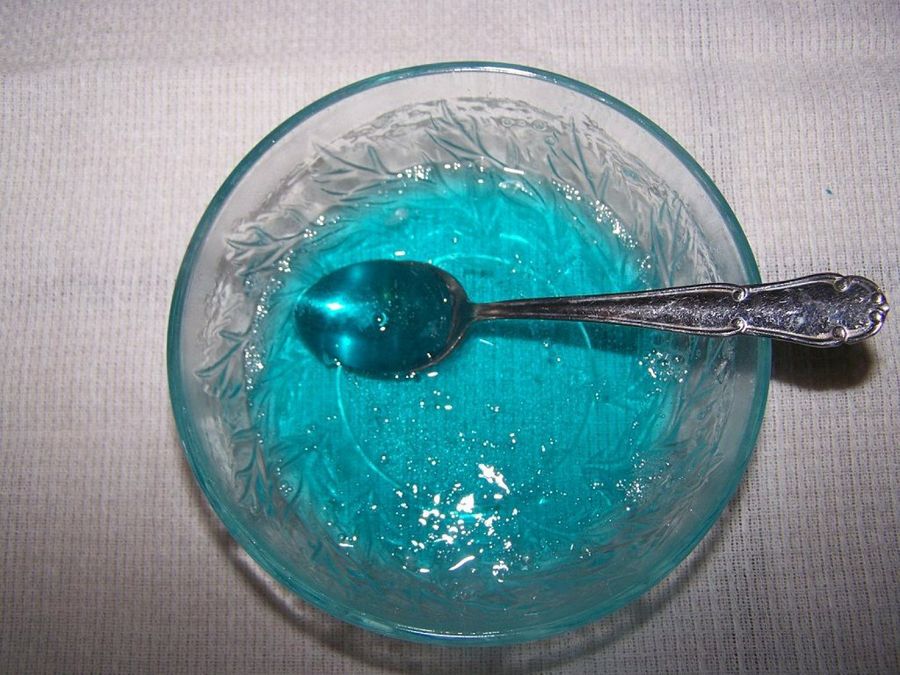 “Primero añadimos el colorante y removemos bien para que se mezcle con el jabón líquido, después le pones el aceite esencial del olor que quieras. Si no tienes, no pasa nada, porque el jabón lleva un poquito de perfume, también le puedes añadir la purpurina o flores secas, hierbas aromáticas, lo que tú quieras. El colorante azul lo venden en grandes superficies y viene en tres colores: azul, amarillo y rojo”.