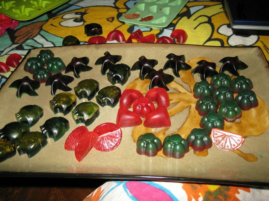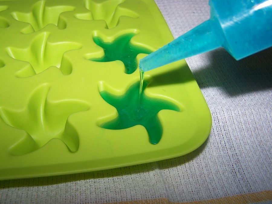 Para conseguir los de varios colores, explica la artista, echamos en el molde con la jeringa primero un color, dejamos enfriar, y cuando añadimos el segundo color ya la base ha cuajado, de esa forma los colores no se mezclan. Lo podemos apreciar en el sensacional lote de Ekuss.