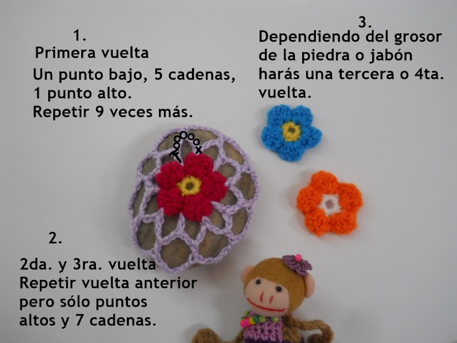 Una compañera de trabajo vio los pisapapeles que hice de piedras (aqui y allá) y quiere hacer uno pero para jabón como complemento de un regalo, asi que le hice un patrón básico el cual sirve para pisapapeles y cubre jabón o jabonera, soap cosy o como le quieran llamar