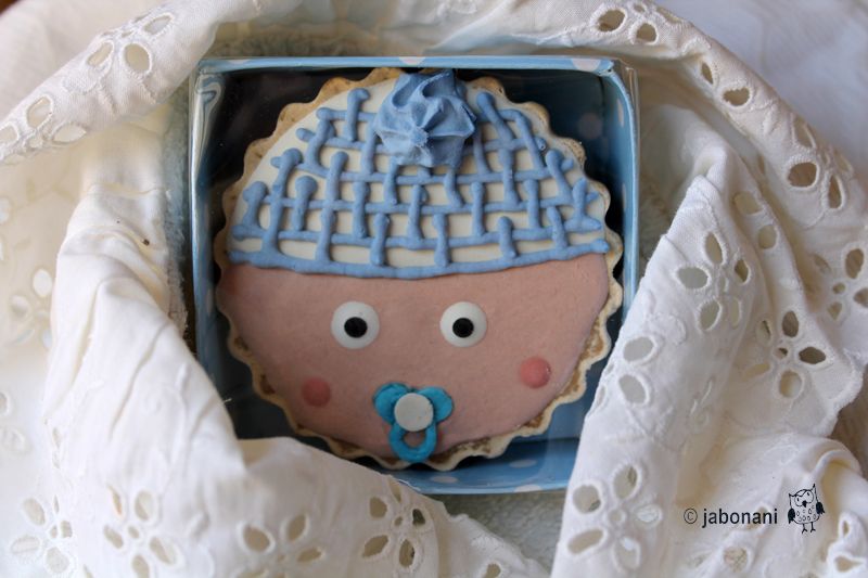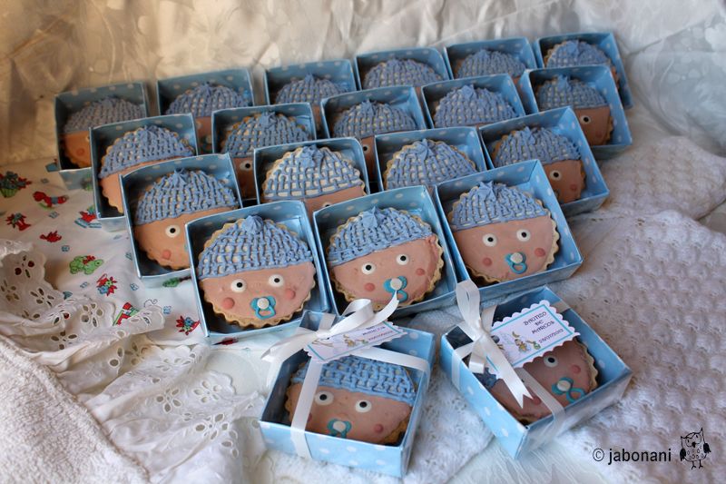 Se trata de unos jabones con caritas de bebé , ya que me preguntaron que si tenia jabones para un bautizo, y como yo siempre estoy probando a hacer cosas nuevas le mandé a la mamá una foto con un jabón de unas de las muestras que había probado a hacer y le gustó mucho, asi que me puse manos a la obra, o en este caso, al jabón e intenté personalizarlos un poquito más, haciendo los complementos en tonos azules, ya que se trataba de un nene, con el chupete y el gorrito a juego, éste último lo he hecho intentado simular a los gorritos de lana, dando el aspecto de como si se entrelazara el tejido.