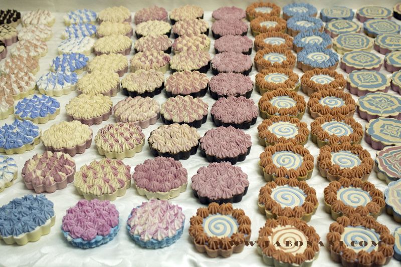 Eran bastantes unidades las que necesitaba asi que decidimos que lo mejor era un combinado de modelos para que pudiera tener variedad, tanto con los jabones cookies con piquitos, como con dibujo de estrella en varios colores y con dibujos de espirales,??. modelos que van surgiendo de la imaginación de una jejejejeje, y los que han ido surgiendo después, pero estos ya os los iré mostrando a medida que vaya publicando futuras entradas, (hay que hacerse esperar para que sigáis leyendo los posts :P jejejeje).