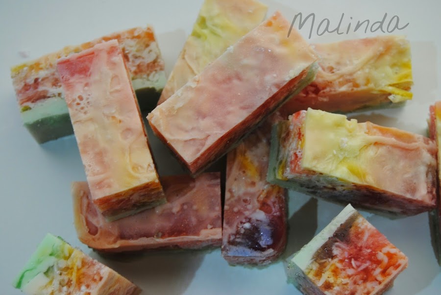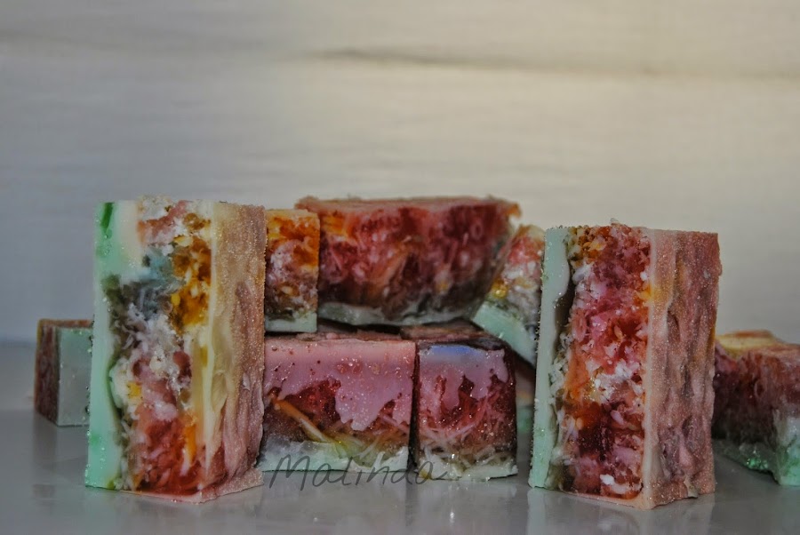 Entre los ingredientes de estos bonitos y coloridos jabones, se encuentran aceites vegetales como oliva, coco y almendras, todos ellos con multitud de beneficios para la piel.