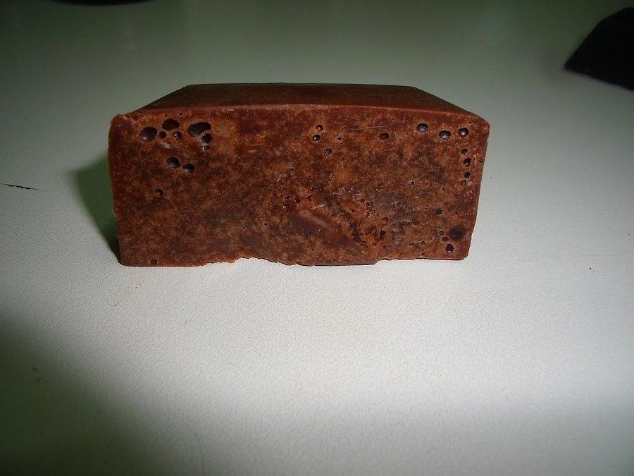 Este es jabón de chocolate. Lleva la base de glicerina, chocolate puro y aceite de almendras.