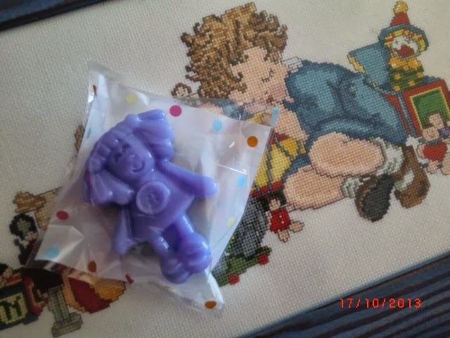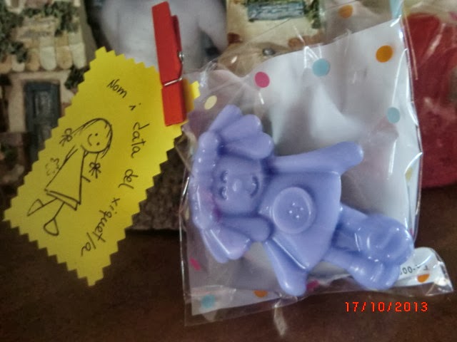 Y aquí mis primeras cositas en glicerina, que ya tenía ganas de estrenar estos moldes y que para glicerina son ideales. Comprobadlo vosotr@s mismos....Para un bautizo o un cumpleaños tierno.