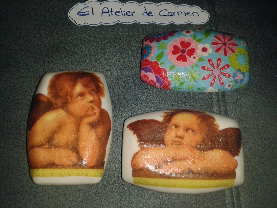 En ésta entrada os dejo la últma remesa que tenía de jabones decorados. Los compré para un trabajo de hace unos meses, y de los que tenía que hacer, compré tres jabones de más por si eran necesarios, como todos salieron bien, no me equivoqué en ninguno, me quedaron éstos sin decorar.