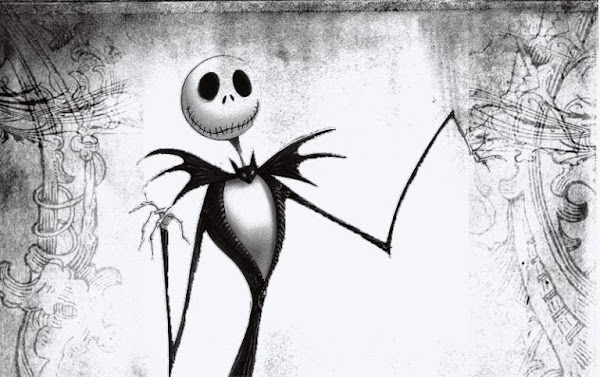 Bonito gráfico de Jack Skeleton de Pesadilla Antes de Navidad en blanco y negro...