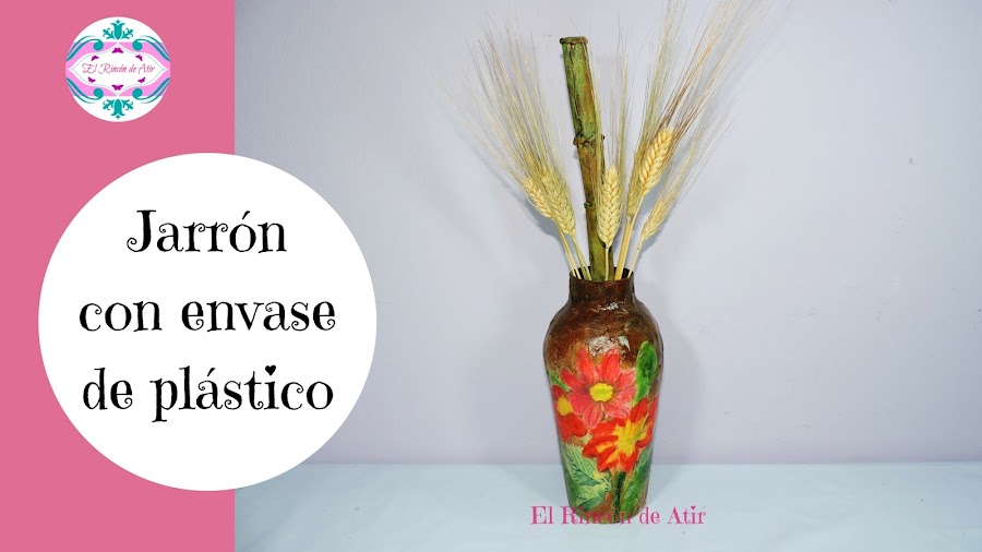 Es un jarrón pequeño que mide aproximadamente 20 cm de alto aunque el tamaño va a depender del envase que utilices, por lo que puedes adaptar el tutorial al material que tengas.
