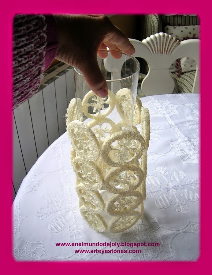 Cuando se seco metí un jarrón de cristal para hacer la decoración exterior...