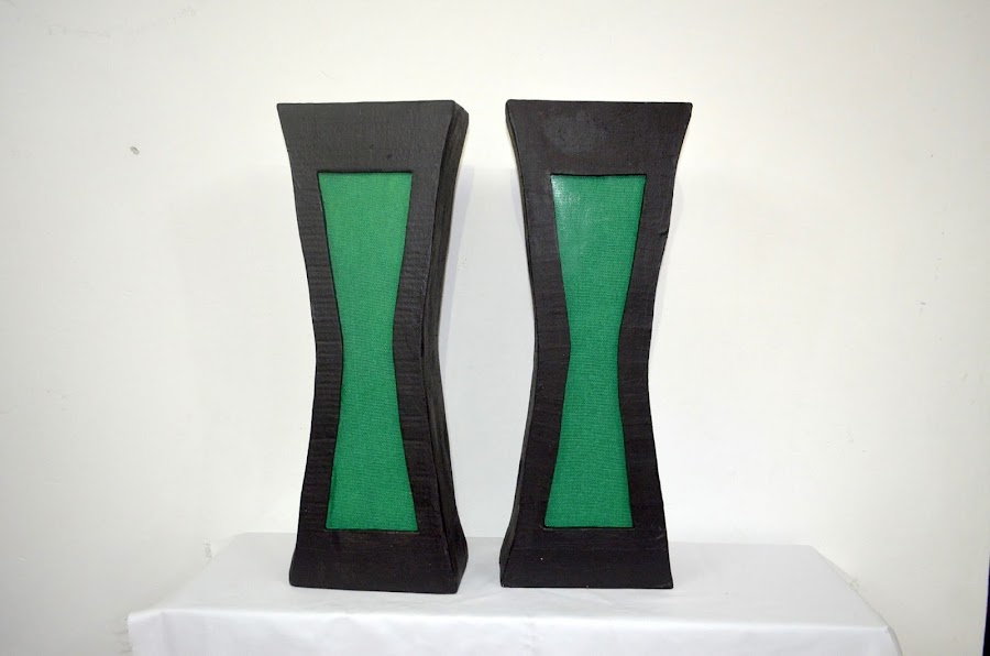 14 Utilizando pegamento de secado rápido pegamos las piezas verdes en ambos costados de cada jarrón.