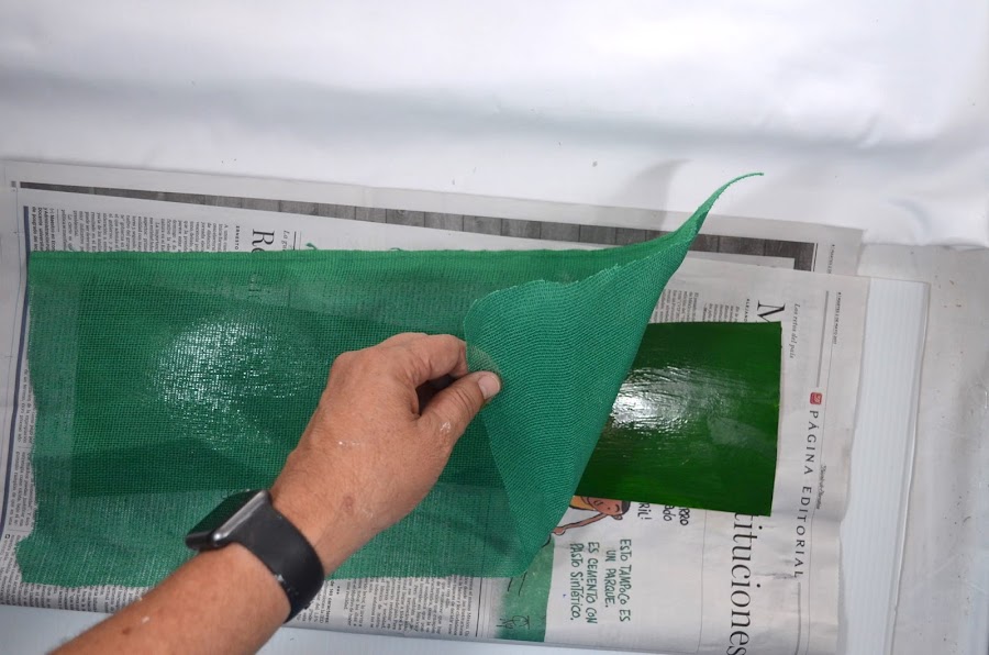 10. Utilizando pintura acrílica le damos una mano, en este caso en color verde.