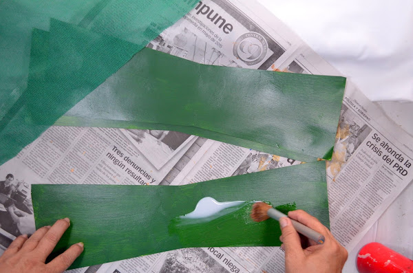 10. Utilizando pintura acrílica le damos una mano, en este caso en color verde.