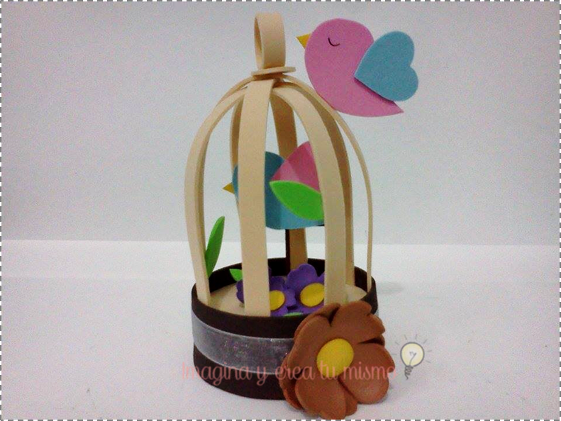 Bonito Jueves para todos, por unas o por otras se me dificulto publicar en mimimimiércoles, pero hoy ya estamos acá con una manualidad muy chula de bonita, que hoy día están muy de moda, resultaría extraño colocar una jaula en mitad de un evento formal, pero ahora el panorama de las bodas, comuniones, bautizos y otras fiestas se está renovando introduciendo elementos como estos. Existen de distintos tamaños y materiales y en esta ocacion vamos a aprender hacerlas de goma eva.Podemos hacerlas de diferentes tamaños, con los colores que una elija y con los elementos necesarios o deseados.