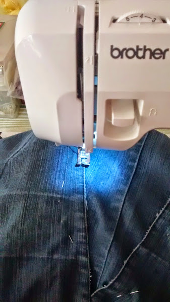 Paso 5: Hago un doble doblez hacia adentro para el ruedo así evito que la tela se deshilache. Y vuelvo a elegir una puntada decorativa para el ruedo.