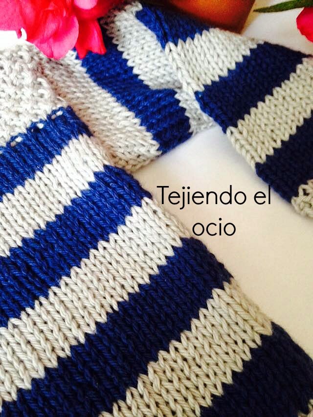 Los colores que he elegido son muy parecidos a los que aparecían en el libro (Que se puede tejer cuando se esta esperando de Nikki Van de Car). Utilice lana de Anna & Claras 100% algodón, con un ovillo de cada color podéis tejer este jersey y sobra para usar en otras labores. Mi marido me dice que de todo lo que he tejido es lo que más le gusta jajaja, yo creo que es por el color. No tenemos los mismos gustos cuando hablamos de colores.