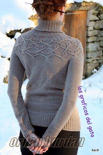 Patrón para realizar un bonito jersey con cuello y dibujo...