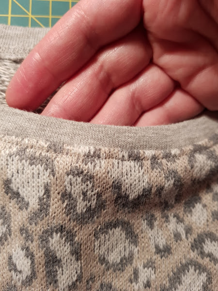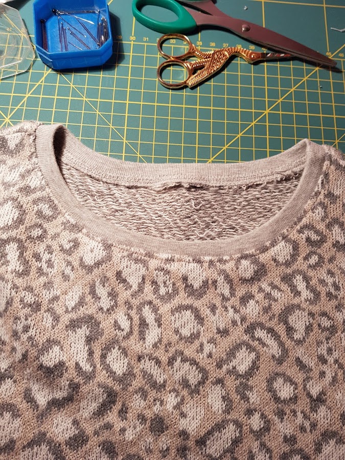 Para el cuello he utilizado tela de puño en color gris claro , para darle un acabado mas acorde a un jersey y el resultado no me puede gustar mas.