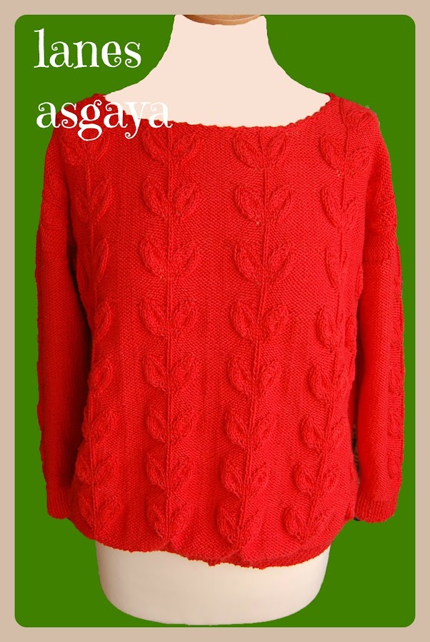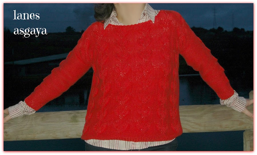 Pero cuando se puso en contacto conmigo una clienta que había quedado muy contenta con mi trabajo y que, sin discutirme el precio, me propuso este reto, pues acepté. Me mandaba una foto de un jersey que había visto en internet y que le gustaba, pero lo quería en algodón más fino y de color rojo pimentón.