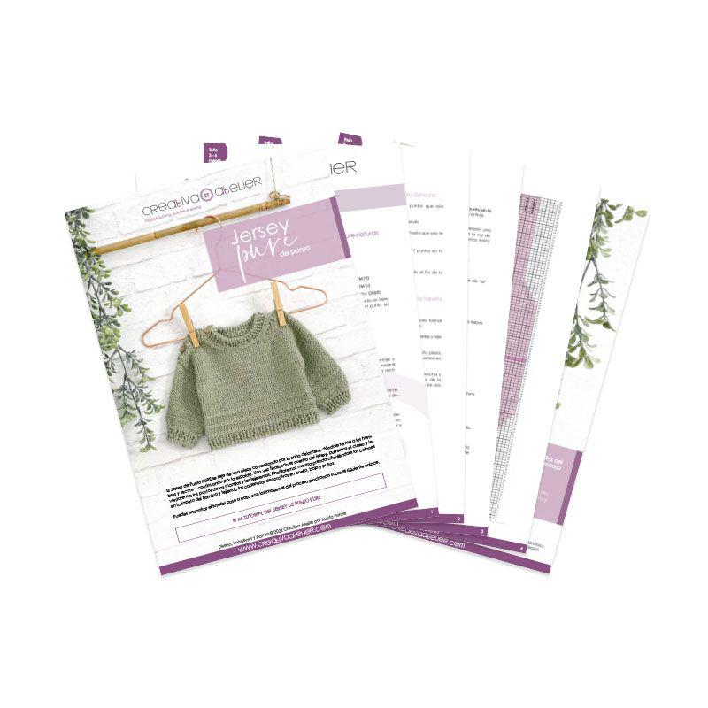 Aparte de la talla gratuita (6-8 años) que encontrarás en este tutorial, el jersey de Punto PURE está disponible en las tallas:1-3 meses