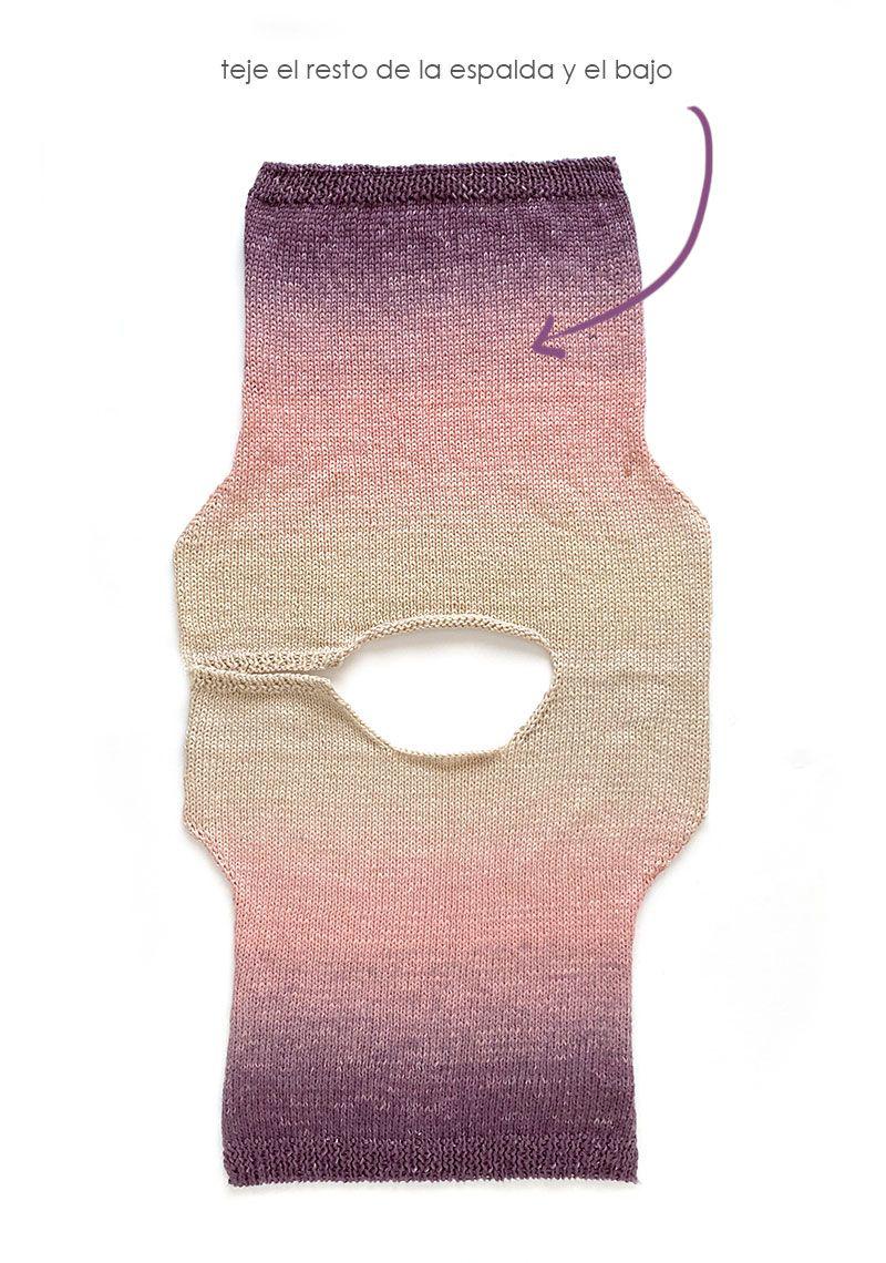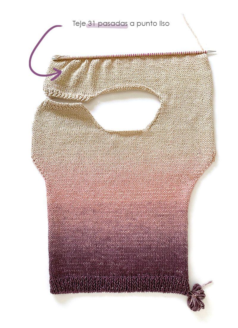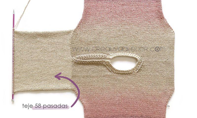 Teje 31 pasadas a punto liso para formar la parte trasera de las sisas. (12 cm aproximadamente)