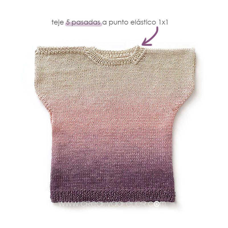 Debido a la particularidad del algodón PURE DEGRADÉ, que he elegido para este proyecto, solamente se podrá conseguir el efecto degradado que ves en las imágenes del tutorial en algunas de las tallas.