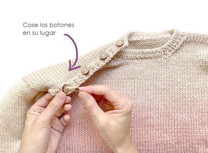 En segundo lugar, la abotonadura al hombro. Un detalle imprescindible para las tallas de bebé, para que el jersey sea más fácil de poner y pasar por la cabeza y diferenciador en las tallas mayores.