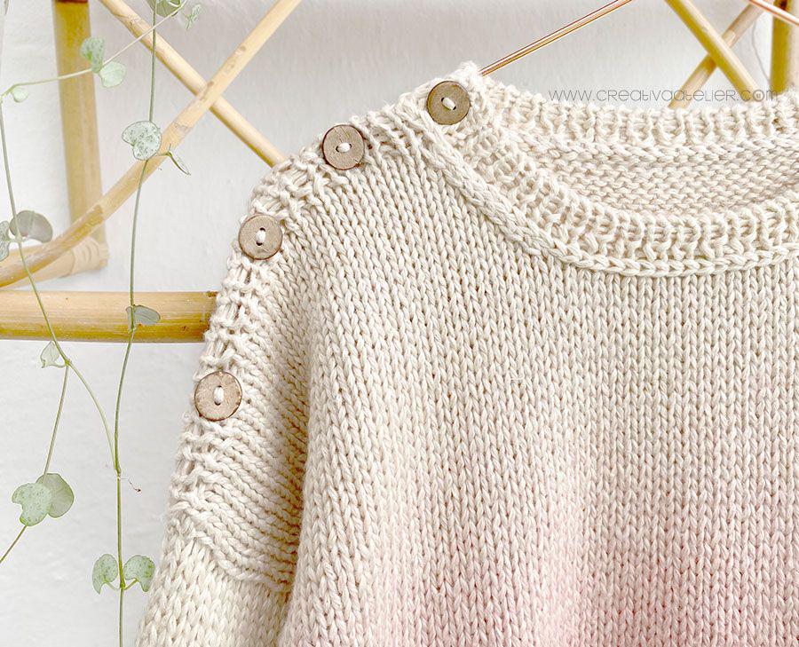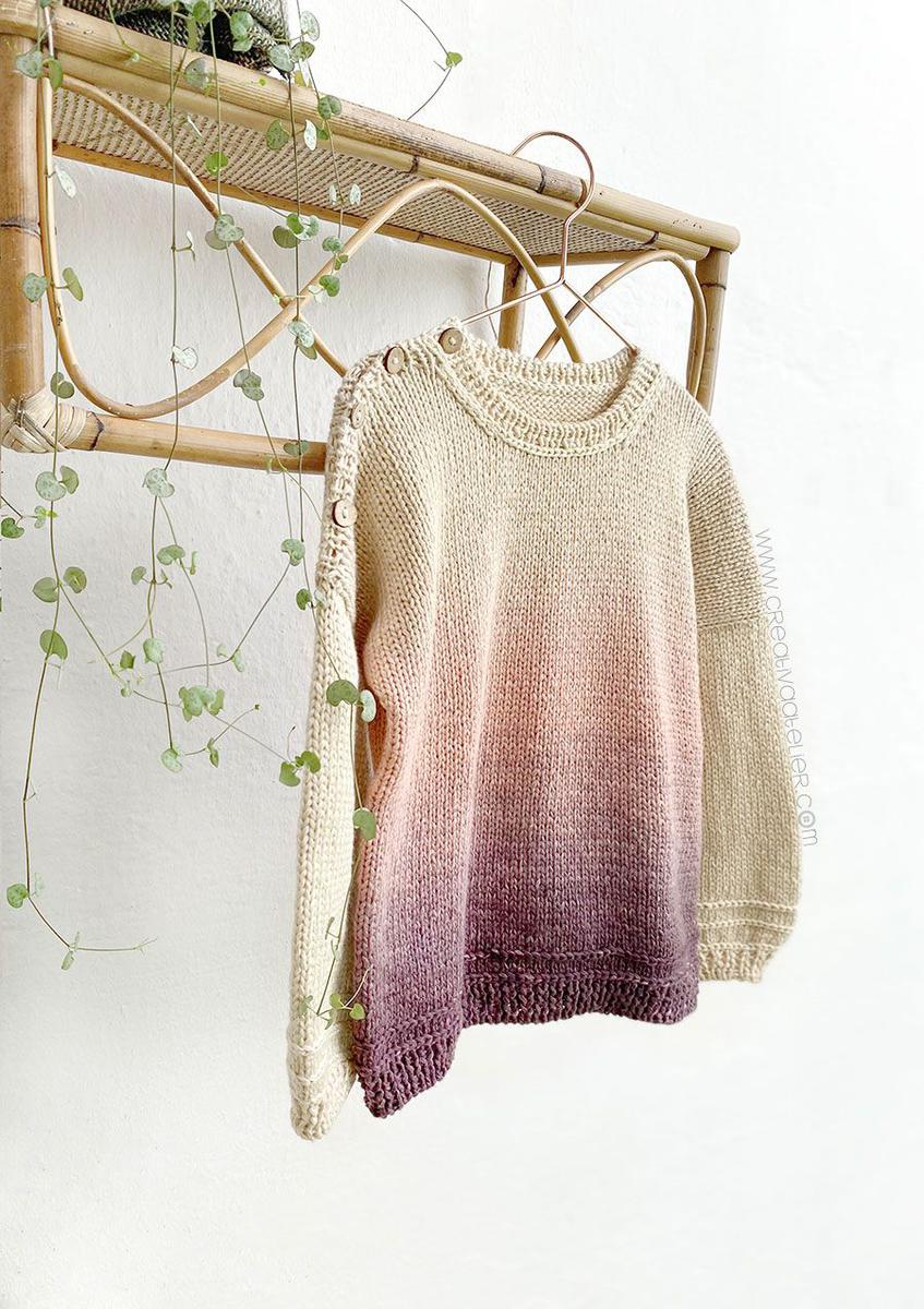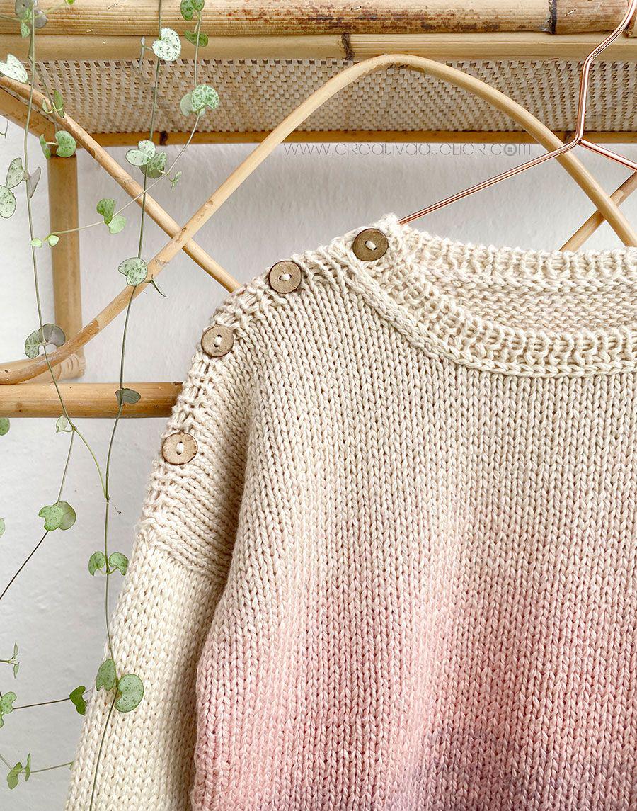 Y por último, y lo que más salta a la vista, ¡su degradado!. Usando la fibra correcta, podrás tejer un jersey degradado así de bonito.