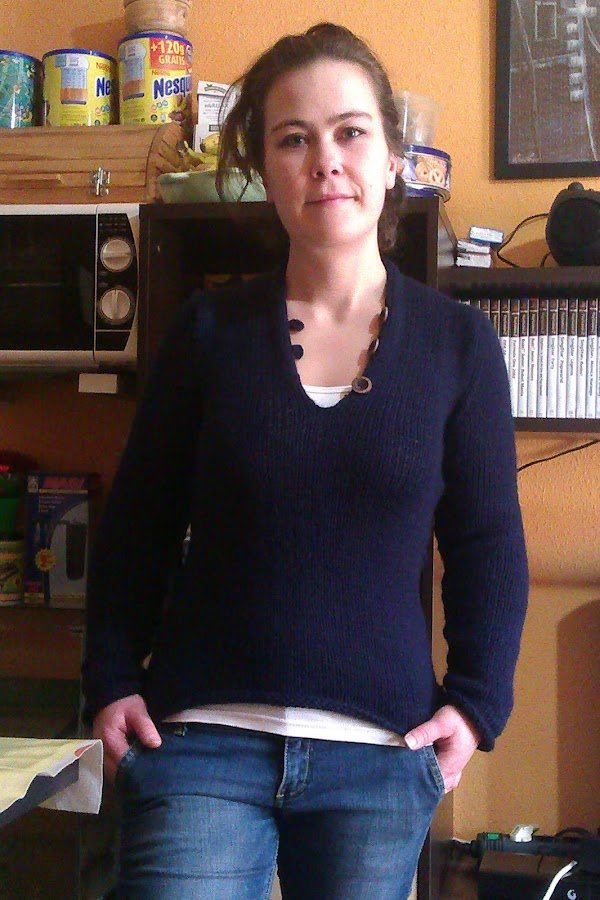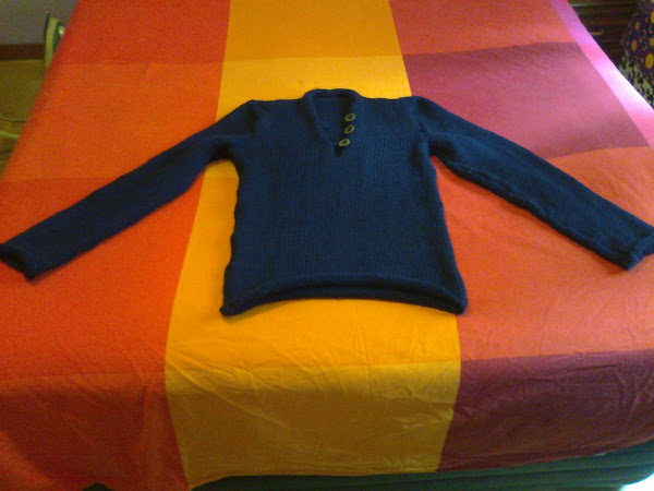 Veréis, hace tiempo (en septiembre para ser más exactos) empecé un jersey para mi padre y la verdad que no lo pudo escoger más sencillo. De hecho puede que el haber sido taaaan sencillo sea el motivo de que haya tardado tanto tiempo en terminarlo (ahora que ya estoy metida de lleno en el punto, realizarlo entero a punto jersey derecho me resultó algo monótono...)