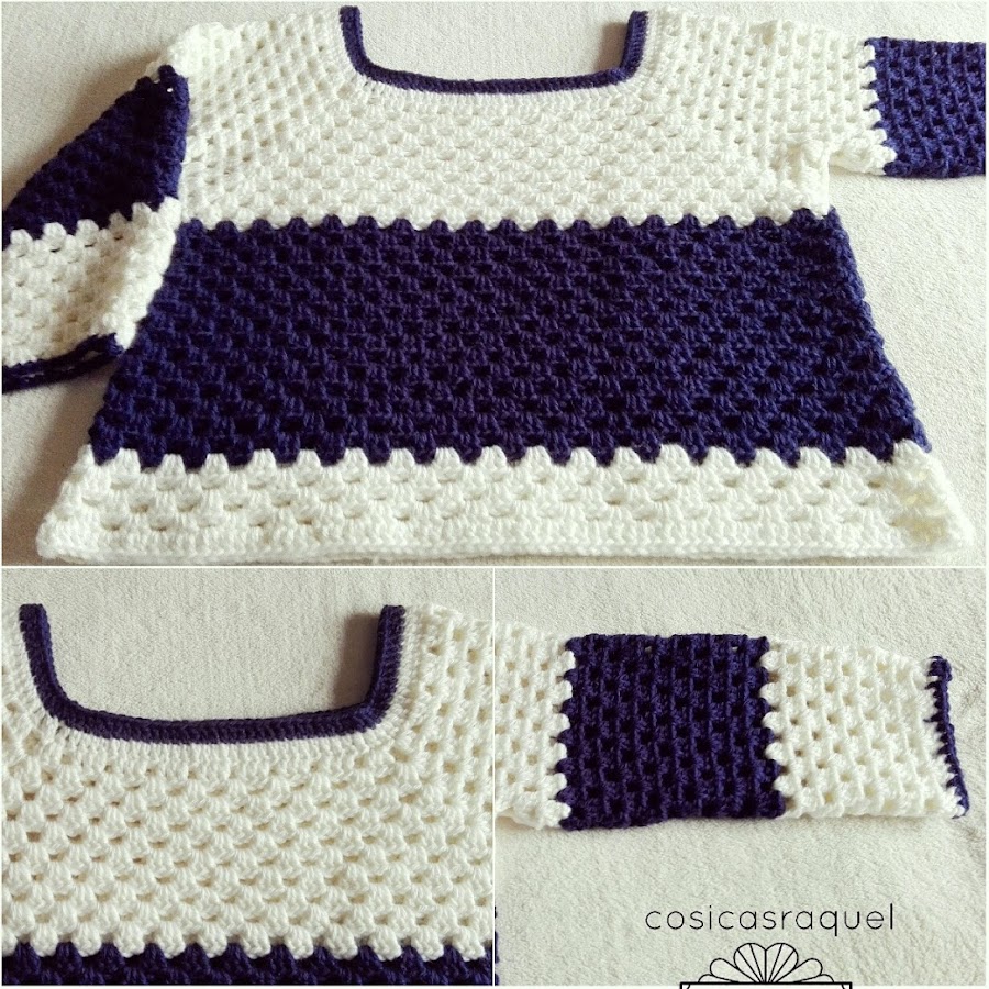 Como me sobró lana del poncho a crochet que hice me animé a tejer este jersey variando un poco en vez de ir cambiando de color, lo hice combinando el blanco y azul, pero puedes tejerlo como más te guste.