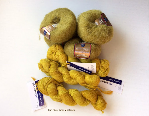 Para tejer el jersey utilicé Malabrigo Yarn Lace en color 35 Frank ochre y Mohair suave de Valeria lanas tejidos juntos con aguja de 3.5 mm.