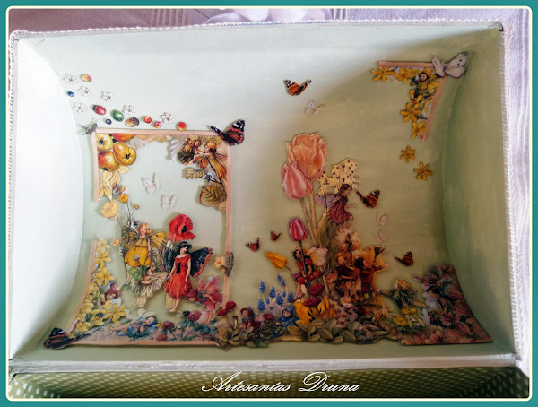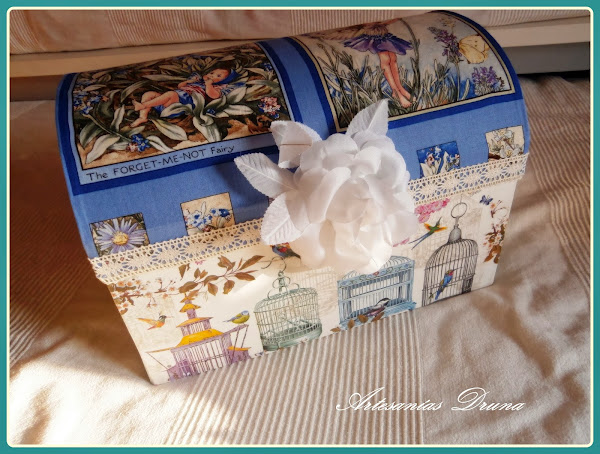 Esta cajita de madera me la consiguió mi querida Mar, y se fue para mi querida Mamen. Está realizada con acrílicas, entelada con doble faz y stencil.También va decorada con tela de arpillería barnizad ...