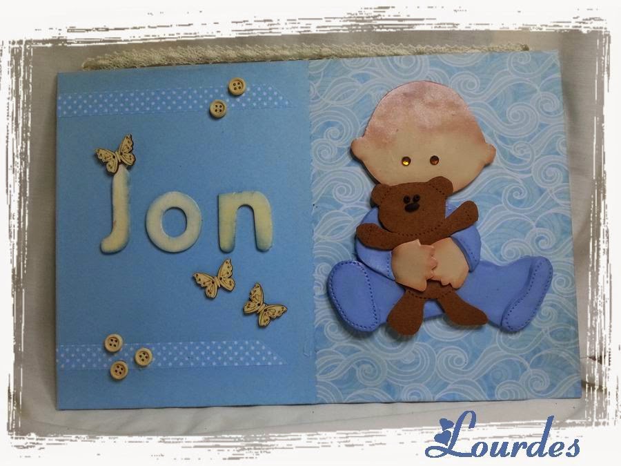 Letras de madera, botones redondos y de mariposa tambien de madera y washi tape.