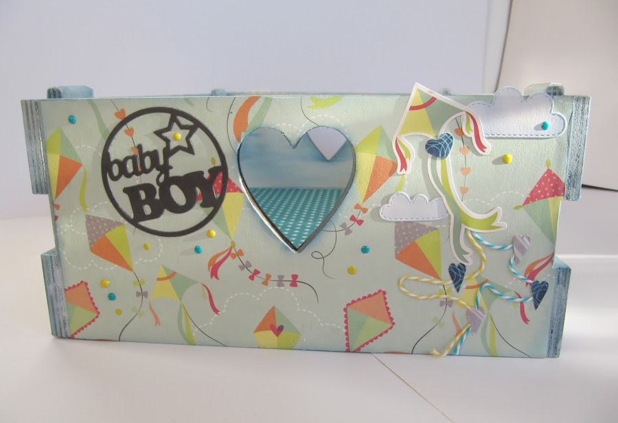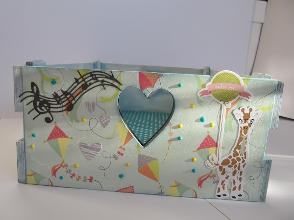 La verdad es que el hacerlo fue rápido, pero me costo mucho encontrar los papeles que me motivara ponerme con ella, fue en la feria de Sitges donde vi los papeles con sus pegatinas ideales para la caja, ni conocía la marca!, tenía colores suaves, dulces animalitos, junto unos troqueles, el trabajar con ellos fue muy fácil!!