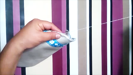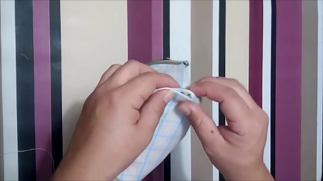 Ahora, damos la vuelta y cerramos la base y la coseremos con una puntada sencilla y con hilo normal.