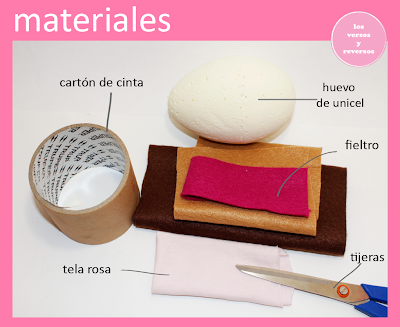 Cabe mencionar que el cartón que utilicé es aquellos que van en el centro de las cintas adhesivas grandes y que son muy rígidos. Utilicé un huevo de unicel porque es el que tenía en casa, puedes usar una esfera de unicel....por cierto...agrega un listón del color que prefieras a la lista de materiales.