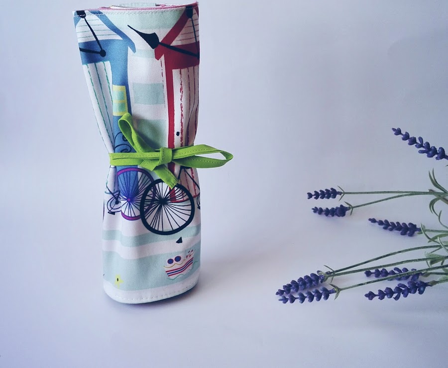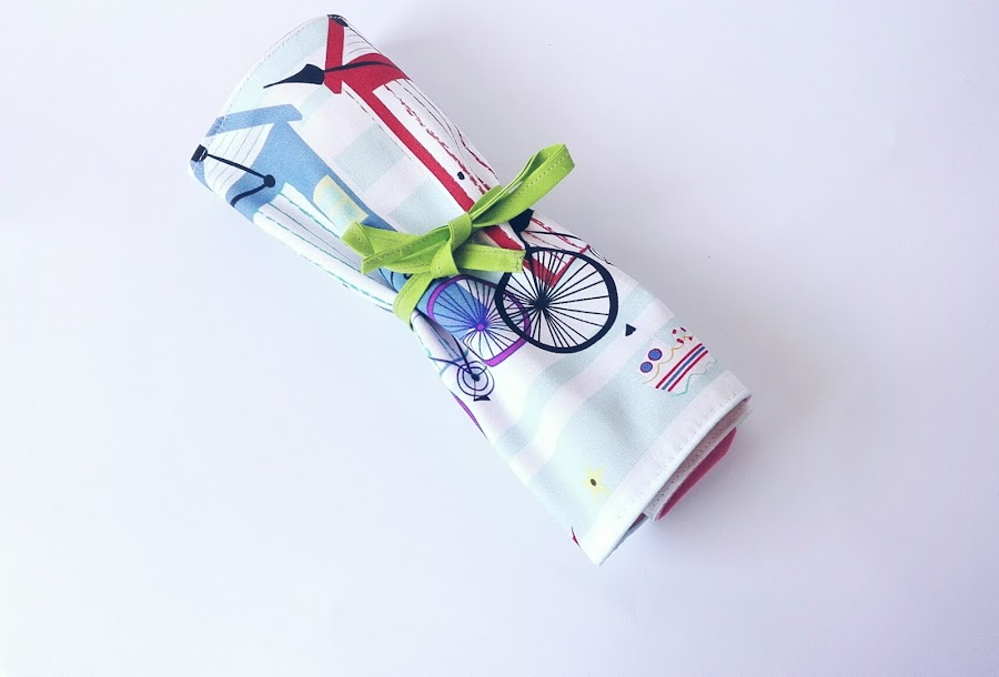 Después de mucho pensar, ya que me daba pena cortar esta tela, que parece que narra historias o sensaciones..., me decidí a coser un JOYERO DE VIAJE, perfecto para una tela tan alegre que evoca la sensación de viajar y de vacaciones en si misma.