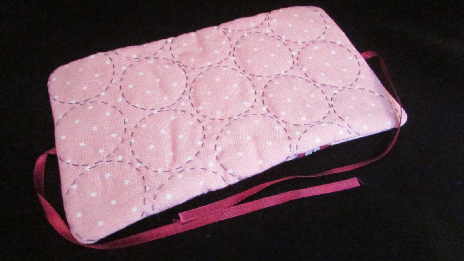 Para el exterior, una loneta de lunares, acolchada a mano, como siempre y, una vez más en círculos, porque creo que le van mucho a los lunares.