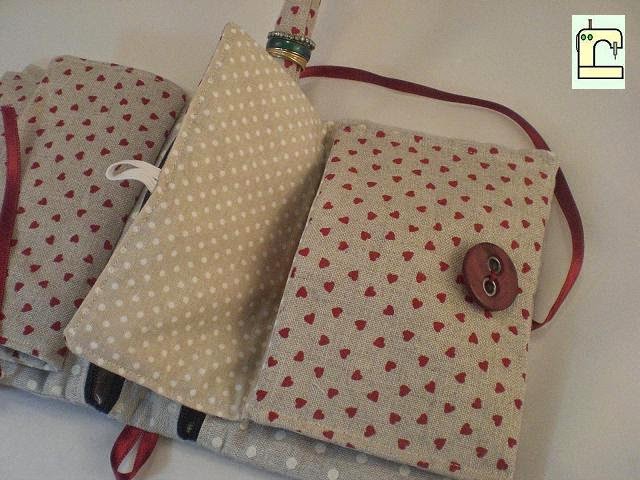 Aquí uno de los bolsillos de "plastón" abierto, por supuesto forrado, esta vez con una tela de algodón de topitos.