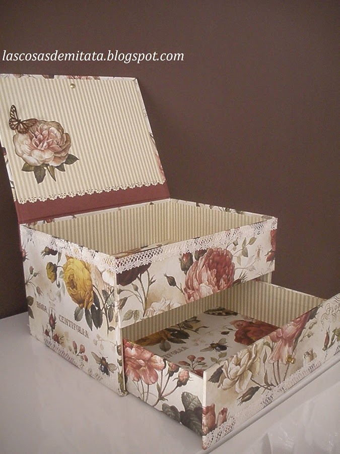 Hola chic@s hoy os muestro un regalito para estas Navidades, este en concreto es para Puri que me escribió desde Gerona. Un joyero realizado en cartonnage con doble compartimento y con una combinacion de papeles que me encantan!!