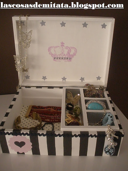 ¿Habeis visto alguna vez las muñecas Top Model? Son autenticas monadas, me encantan!! y desde que cayó en mis manos la imagen de una de ellas supe que iría directa a un joyero. Combinadas con rayas negras/blancas en el exterior y a topitos en el interior. ¿¿Qué me decís?? ¿¿¿os gustan tanto como a mi o preferís otras muñecas como barbie???