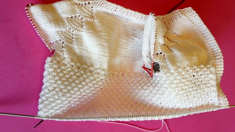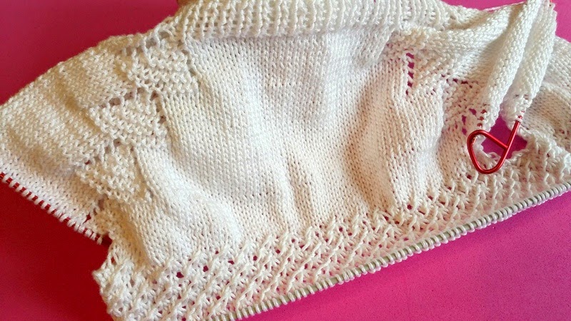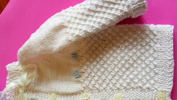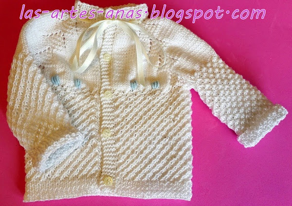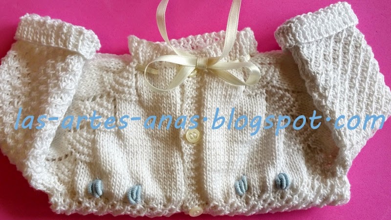 ESTA ES UNA INTERPRETACIÓN , del jubón CON PUNTO ESTRELLA de Triny, mira ESTE VÍDEO y ESTE, yo le he hecho varias modificaciones a mi gusto, y el patrón queda diferente, usé algodón egipcio blanco y agujas del 2 y medio, la talla es para recién nacido ,hasta 3 meses, las cenefas de abrochar van en punto bobo o santa clara,y el cuello, bajo y mangas en elástico 1-1