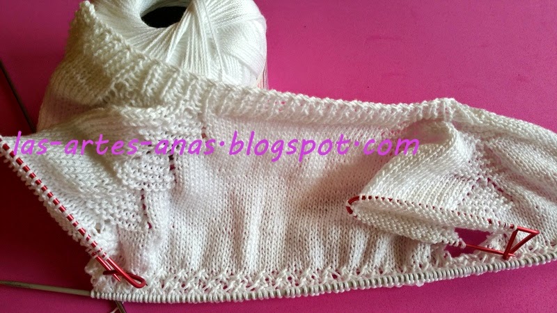 AL INICIAR las mangas he compensado los 8 aumentos, volviendo a aumentar 8 , 4 puntos a cada lado