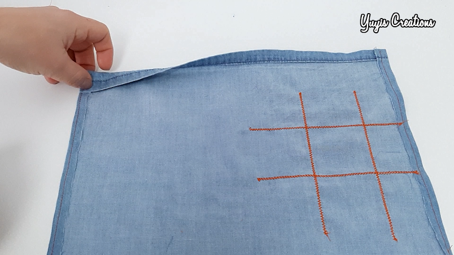 Vamos a empezar haciendo un pequeño dobladillo en la parte superior de la tela y también en los laterales.