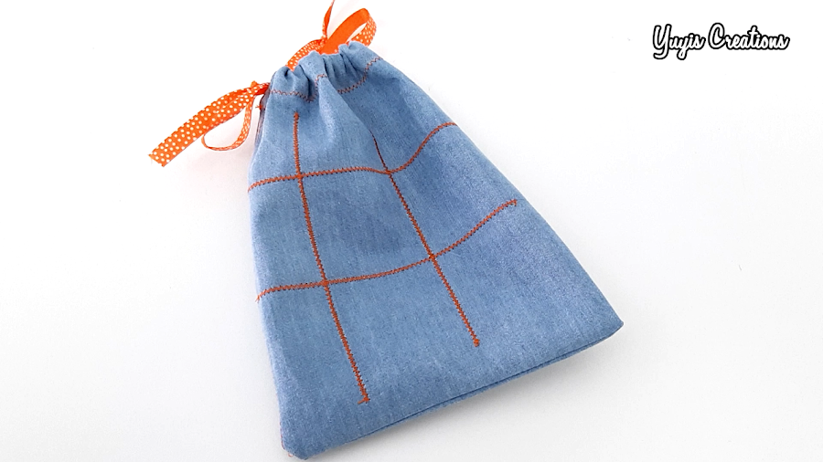 Una vez hecho el canal, doblamos la bolsita con el revés a la vista y cosemos desde la base del canal que acabamos de hacer, hacia abajo, cerrando de ésta manera el lateral de bolsa y la base a la que por cierto, se le debe pasar una costura de zigzag o sobrehilado por el borde para reforzar y dejarlo más prolijo.