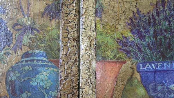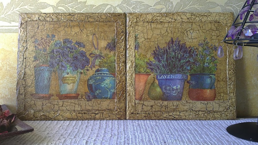 Ya estoy por aquí otra vez, os presento un juego de azulejos, que hice para un regalo, es servilleta, craquelado de dos pasos y betun de judea, espero que os guste.