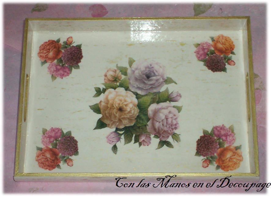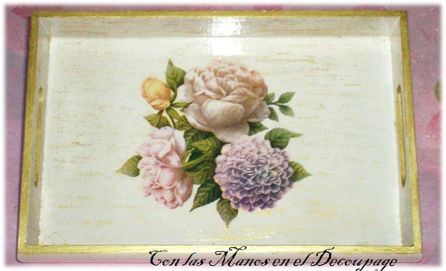 Hola!Os quiero dar mil gracias por todos esos comentarios que he recibido, de apoyo y ánimo, me habéis puesto una inyección de amistad, estoy ahora que me subo por las paredes de la alegría que tengo de ver que hay personas tan fenomenales como vosotras, gracias de corazón. Ya se solucionó el mal entendido con Magi por lo que pasamos página, no soy rencorosa y ya se aclaró.Y ahora al lío, quiero ir enseñando poco a poco, detalladamente los trabajitos que he ido realizando, hoy os presento un juego de bandejas de madera, realizadas con decapado y servilleta. La grande y la pequeña, la pintura de fondo es de color oro y la mediana es un color cobre, finalizado con blanco porcelana. Tratadas con un barniz satinado, aunque en la foto tengan tanto brillo, es por el flash, prometo intentar mejorar las fotos.
